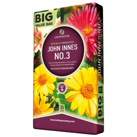 Our John Innes No.3 Peat Free compost is made from the 50 year old recipe of loam and horticultural grit combined with bark fines and COIR. Our formula provides mature plants with a stockpile of nutrients for potting on and final potting of mature plants into large containers or pots. Our John Innes No.3 Peat Free helps to promote strong root development, healthy growth and maintenance of plants along with a long lasting moisture retention feature that will help to reduce the need for watering and prevent drying out. The unique properties of this compost is free draining and helps to prevent the roots becoming waterlogged and keeps porosity to allow plants to respire. The compost is specially formulated to act as an anchor for roots of mature plants with its heavier composition of other composts.