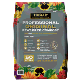 Humax Original Peat Free Compost uses top of the range sustainable raw materials to provide the perfect growing medium for plants. Suitable for • Baskets • Bedding plants • Large pots and containers • Veg plants • Potting into larger pots • Potting small plug plants into small pots Features & benefits • Highest quality sustainable raw materials - sourced and made at our growing media facility • H2Gro wetting agent – Spectacular 3-in-1 mode of action allows for all your customers’ plants’ water needs: - Wetting and spreading agent - Penetrating agent - Re-wetting agent • Starter fertilizer - our professional grade starter fertilizer giving plants and vegetables the perfect initial boost • Silver Sand - Improves feel and flowability of the growing media