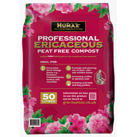 Humax Ericaceous compost is acidic, with a lower pH. It’s suitable for growing ericaceous or acid-loving plants, including blueberries and rhododendrons. Suitable for • Ericaceous (lime hating) plants e.g. heathers, rhododendrons, azaleas and camellias • Cuttings and planting out of pots, tubs and window boxes • Increasing acidity of alkaline soils • Creating acid beds and bog gardens Features & benefits • Highest quality sustainable raw materials - sourced and made at our growing media facility • H2Gro wetting agent - Spectacular 3-in-1 mode of action allows for all your customers’ plants’ water needs: - Wetting and spreading agent - Penetrating agent - Re-wetting agent • Starter fertilizer - our professional grade starter fertilizer giving plants and vegetables the perfect initial boost