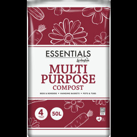 Essentials Multi Purpose Compost can be used in pots and containers, beds and borders and hanging baskets. Works well for all young and established plants, flowers, fruits and vegetables, and will feed them for up to 4 weeks. Great for houseplants, bedding plants, perennials, herbs, shrubs, trees, fruit and vegetables.