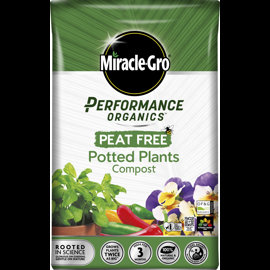 Miracle-Gro® Performance Organics Peat Free All Purpose Potted Plants Compost is a high performance 100% natural and organic compost specially formulated for plants in hanging baskets, pots and containers indoor and out. Glorious on plants, gentle on nature! Ideal for plants, flowers, fruits and vegetables. Not suitable for acid-loving ericaceous plants such as azaleas, rhododendrons and camellias.
