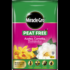 Miracle-Gro Peat Free Premium Azalea, Camellia & Rhododendron, Special Plants Compost is part of the high-performing Miracle-Gro peat-free range. Specially formulated to cater the needs for all ericaceous plants that love acidic growing conditions, this peat-free compost contains patented Smart Fibre™ and Waterlock™ Technologies to ensure your ericaceous plants have all the nutrients they need to survive. Ideal for all ericaceous plants such us azaleas, camellias and rhododendron. Perfect for use in pots and containers, beds and borders.