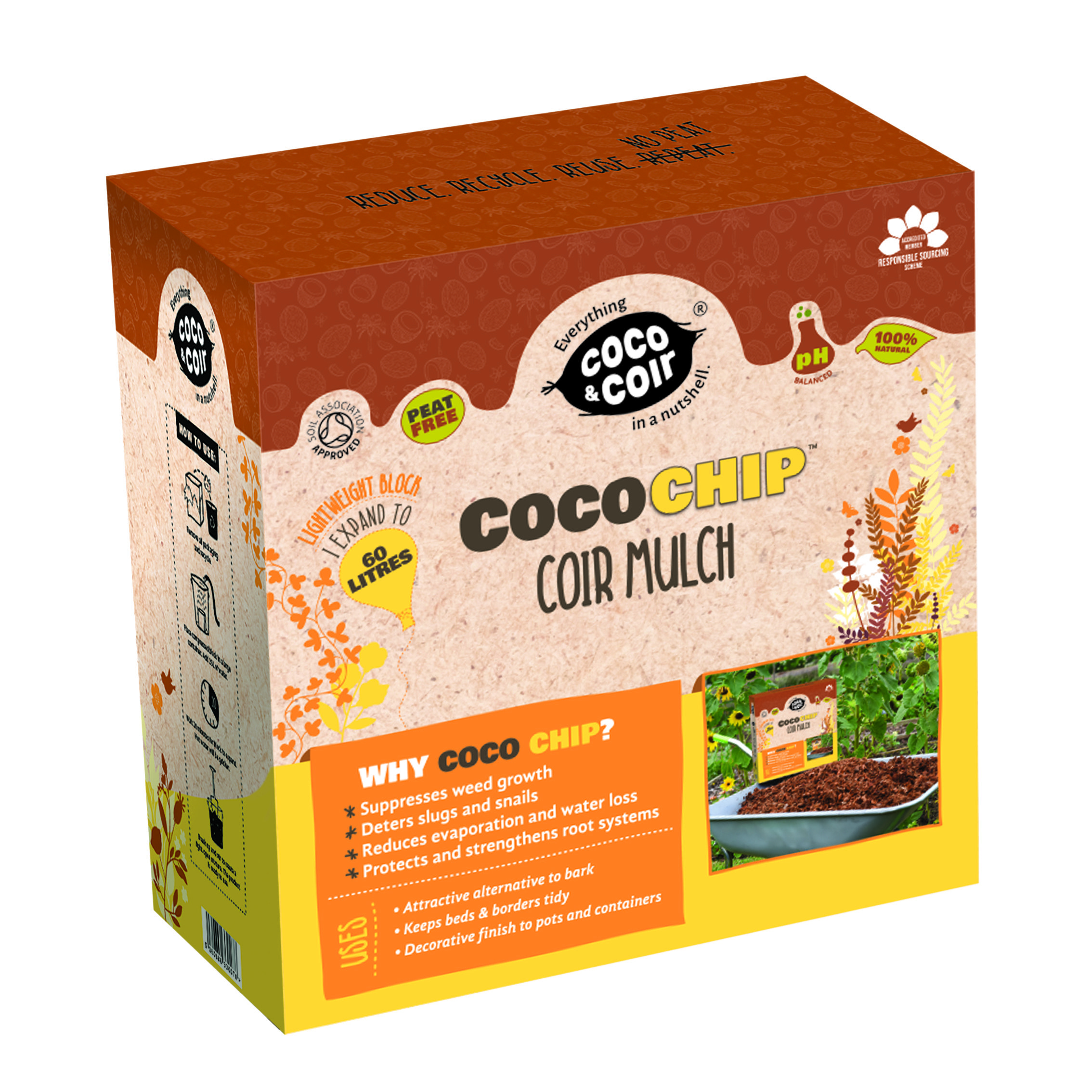 Professional quality, 100% Peat-Free Tomato & Veg Planter. Soil Association Approved for Organic growing. Chemical free and natural. 100% sustainable: grown, harvested, sourced & manufactured in the UK. Suitable for a wide range of grow your own, including Tomato's, Peppers, Beans, and Salads . Animal product free. Available in 60 litre bags, making it the biggest planter available in the UK market.