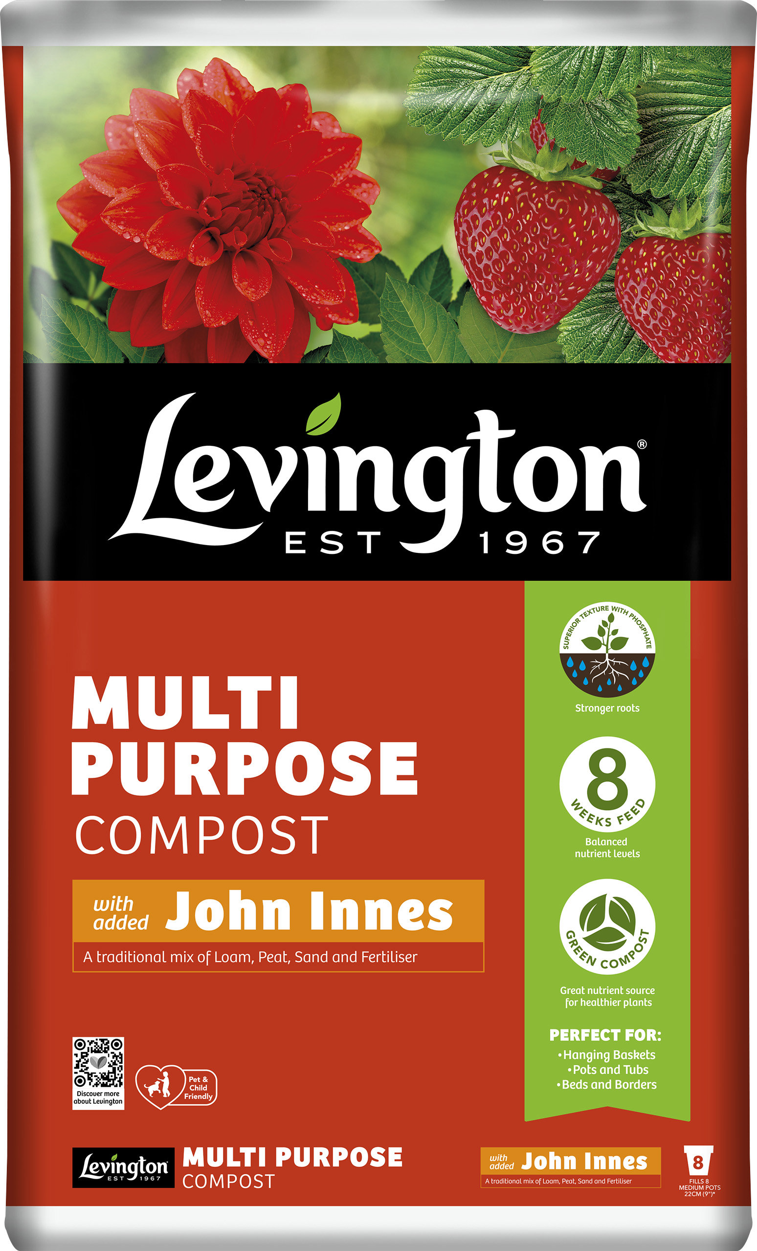 Ideal for all your gardening uses. Perfect for all stages of a plants life, including larger seed sowing. Levington Multi Purpose Compost with added John Innes has been specially developed, containing essential plant food for 8 weeks, to give your plants a great start. Ideal for all your gardening uses. Perfect for all stages of plant life, including seed sowing.