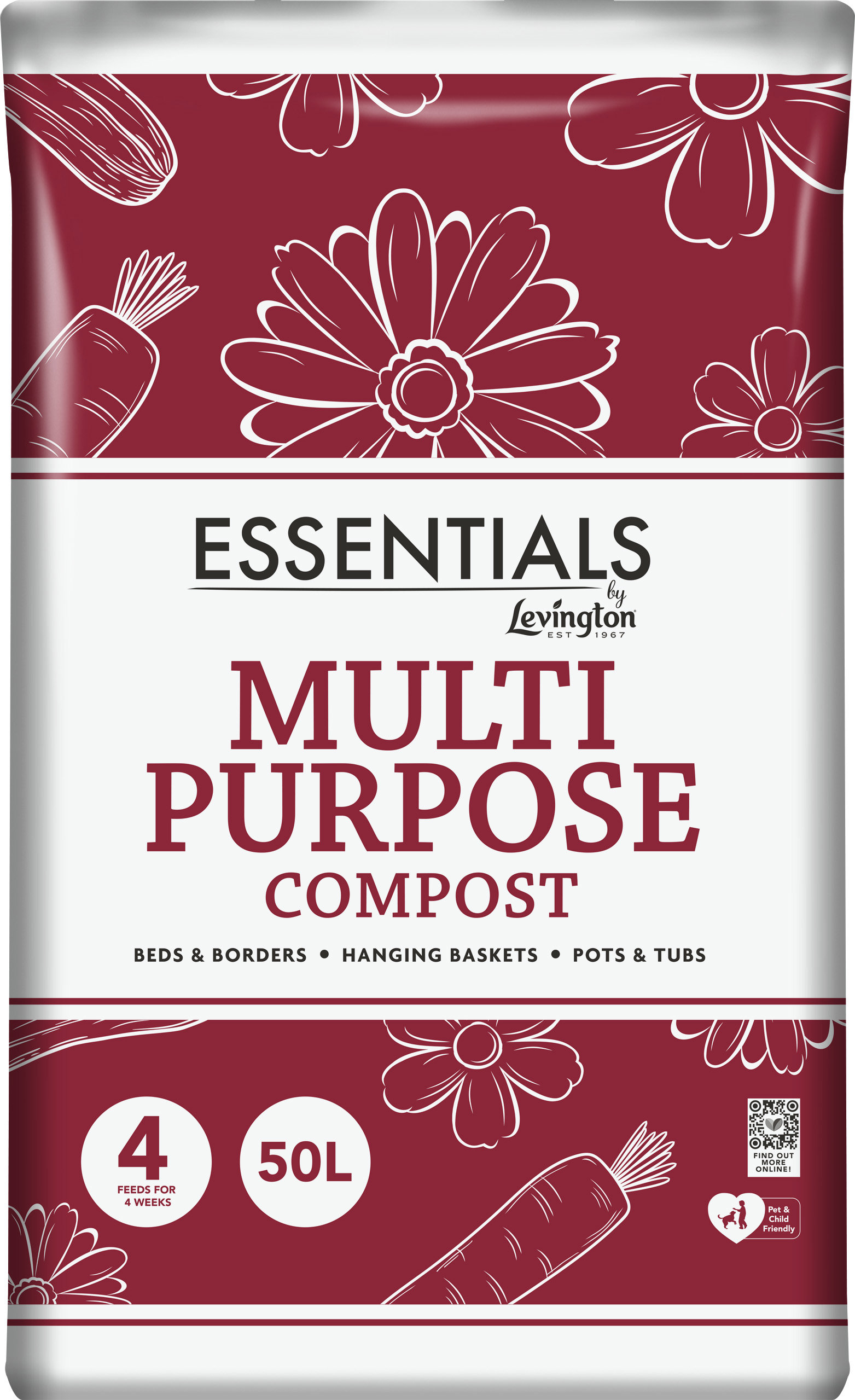 Essentials Multi Purpose Compost can be used in pots and containers, beds and borders and hanging baskets. Works well for all young and established plants, flowers, fruits and vegetables, and will feed them for up to 4 weeks. Great for houseplants, bedding plants, perennials, herbs, shrubs, trees, fruit and vegetables.